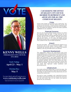 This organization needs to be restructured, have more accountability to our citizens and have some performance standards that they are measured by. We need to turn this into an engine for growth in our community and must bring new businesses in with higher paying jobs other than just retailing and telemarketing positions. We are in an excellent position with Fort Hood being next door. Companies come from all over the country to recruit here and hire our people. We need to have jobs locally so we can retain this high-level skilled workforce with good-paying jobs.